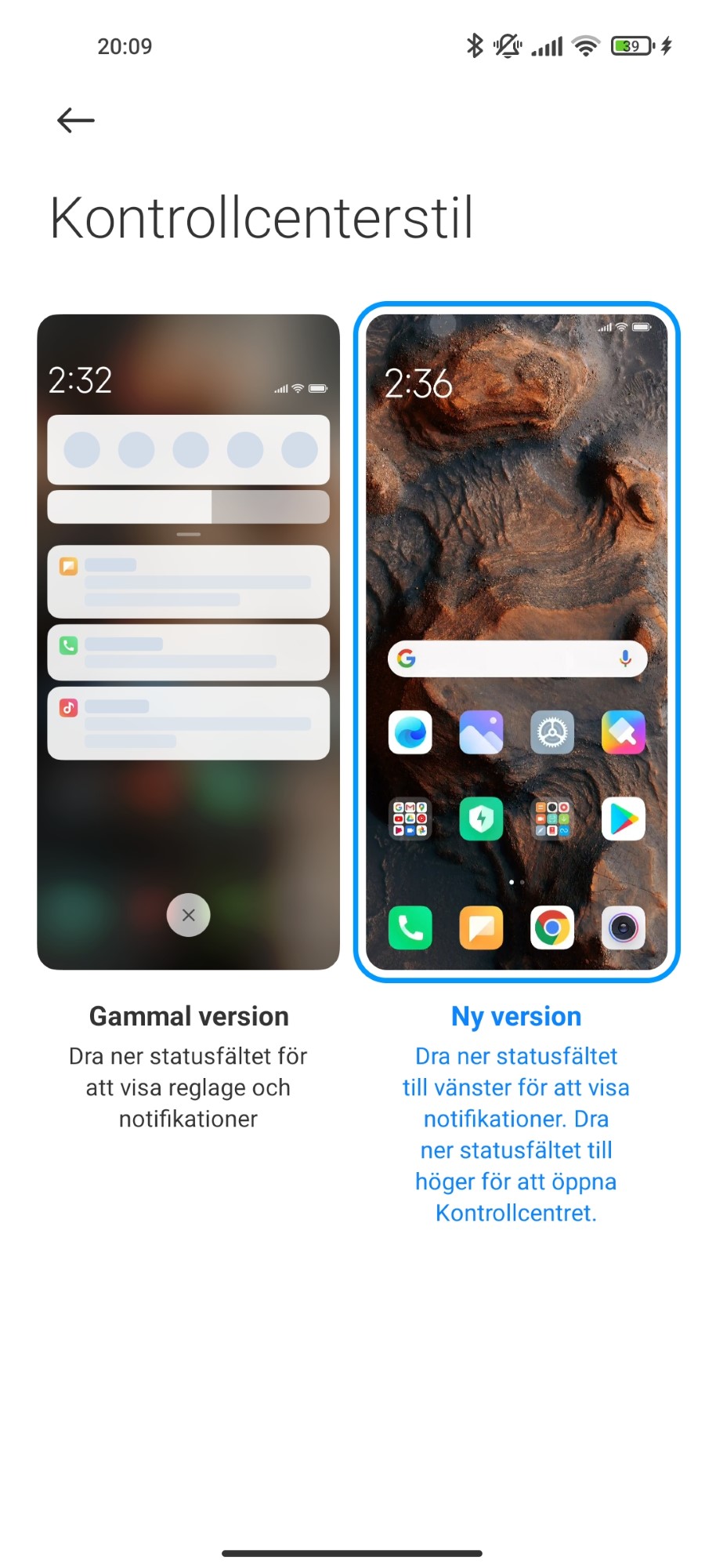 Som tur är så erbjuder 11 Lite 5G NE både den gamla och nya designen som alternativ. Den gamla designen används som standard, medan ”Kontrollcenterstil” kan aktiveras i efterhand. Än en gång visar Xiaomi bristande planering och omdöme när det gäller mjukvara. Företagets till synes improviserade mjukvarustrategi ger inte högt förtroende för mjukvaran. Xiaomi lovar för övrigt inget om framtida uppdateringar.