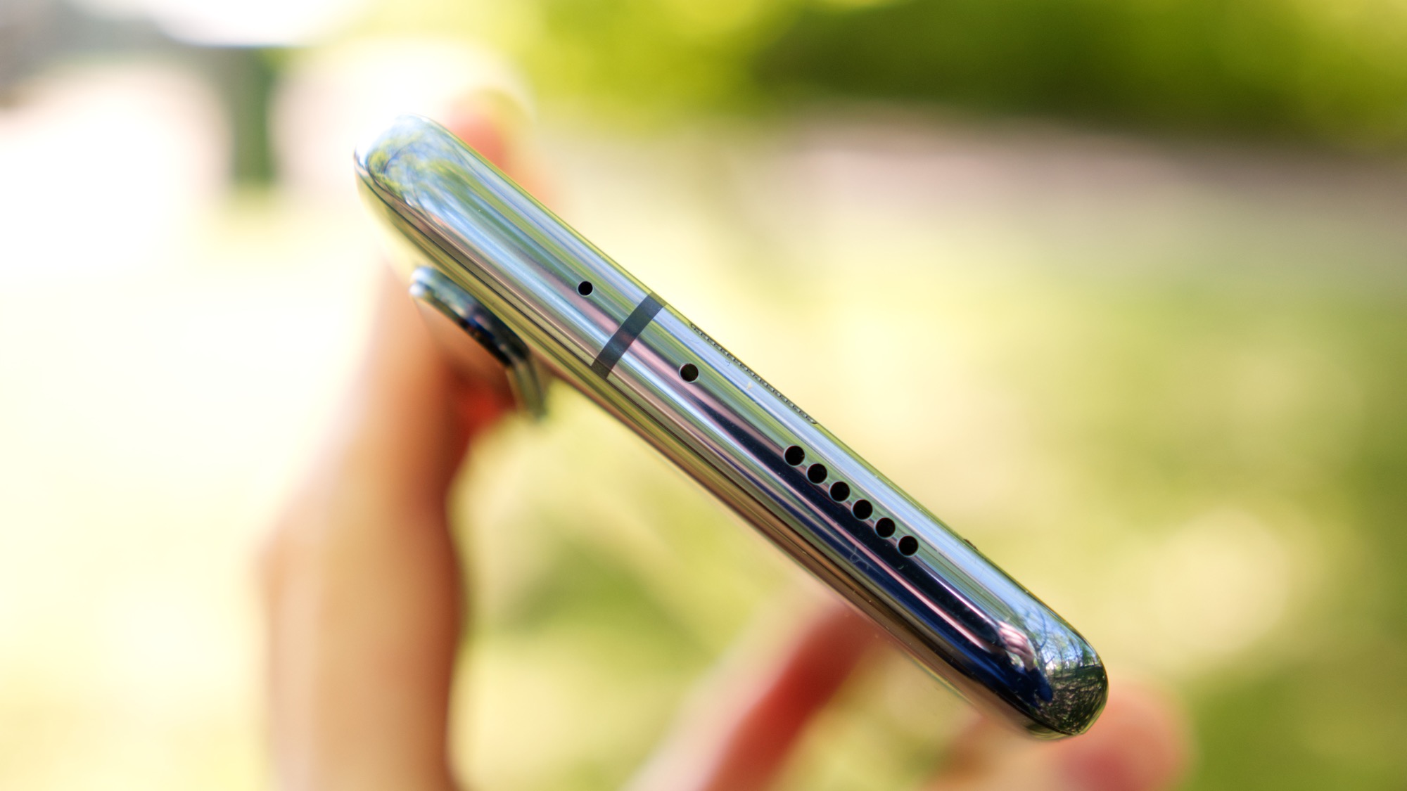 Längs ovansidan har Mi 10 en mikrofon, en IR-sändare och en högtalare. Ovansidan är en ovanlig placering för en högtalare. Placeringen ger utrymme för två väldigt liknande högtalare på vardera sida av telefonen. Högtalarna är dock också lätt att råka täcka med handen när mobilen hålls i landskapsläge. Placeringen på ovansidans vänstra sida gör i alla fall att högtalarnas placering inte är ett lika stort problem för vänsterhänta.