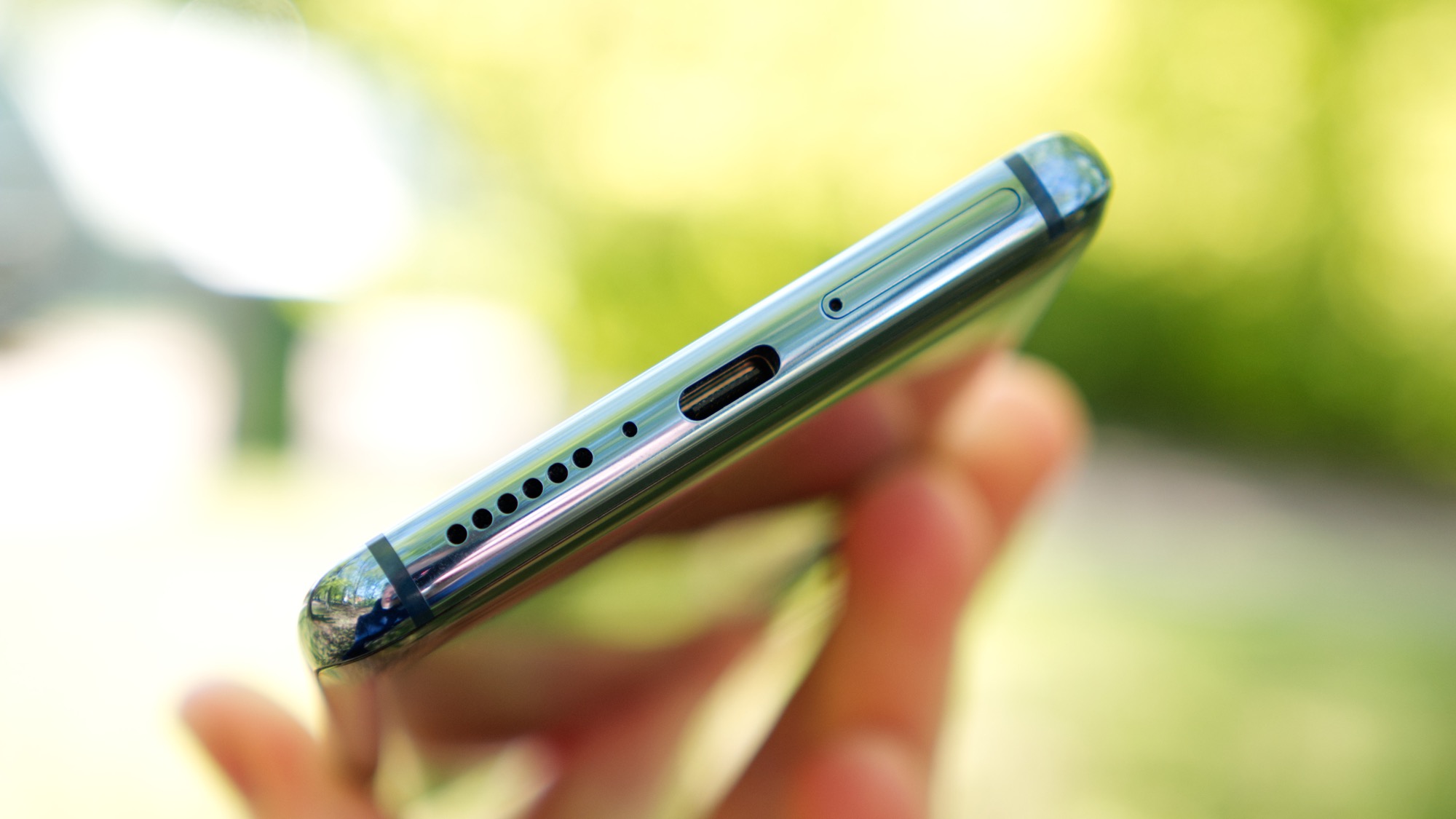 Längs undersidan finns en till högtalare med samma design som på ovansidan. Här finns också en mikrofon, en USB-port och en korthållare. Korthållaren har plats för ett nanoSIM-kort, inget annat. Här finns varken en microSD-kortplats eller en sekundär nanoSIM-kortplats. Eftersom Mi 10 dessutom saknar stöd för eSIM är det helt enkelt omöjligt att använda mer än ett telefonnummer med Mi 10. Det är en brist som vi inte sett i ett flaggskepp på flera år. Faktumet att Mi 10 har stöd för dubbla SIM i andra regioner och dessutom har en plats, som är fylld med plast, i den svenska modellen, gör bristen särskilt frustrerande.