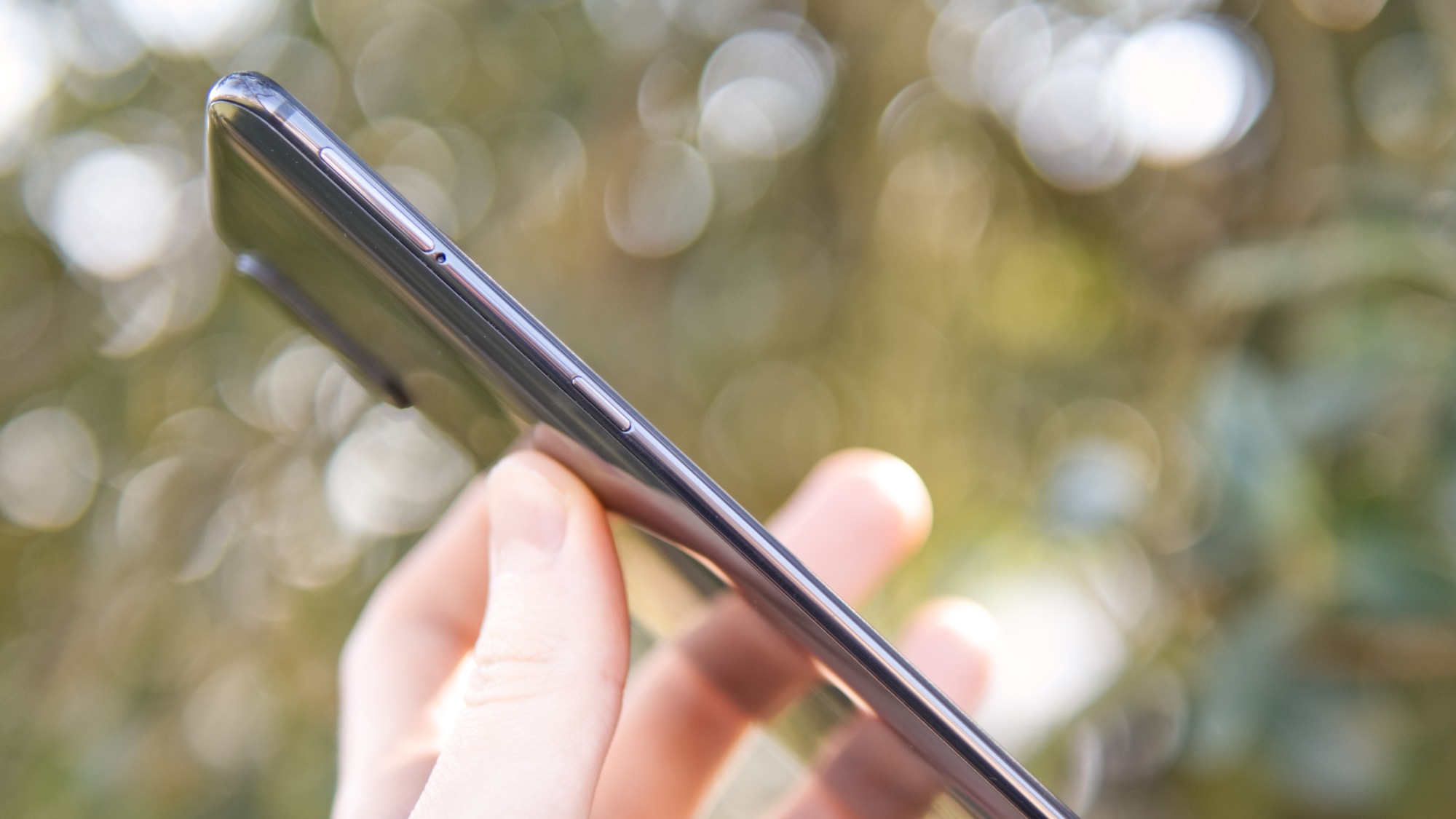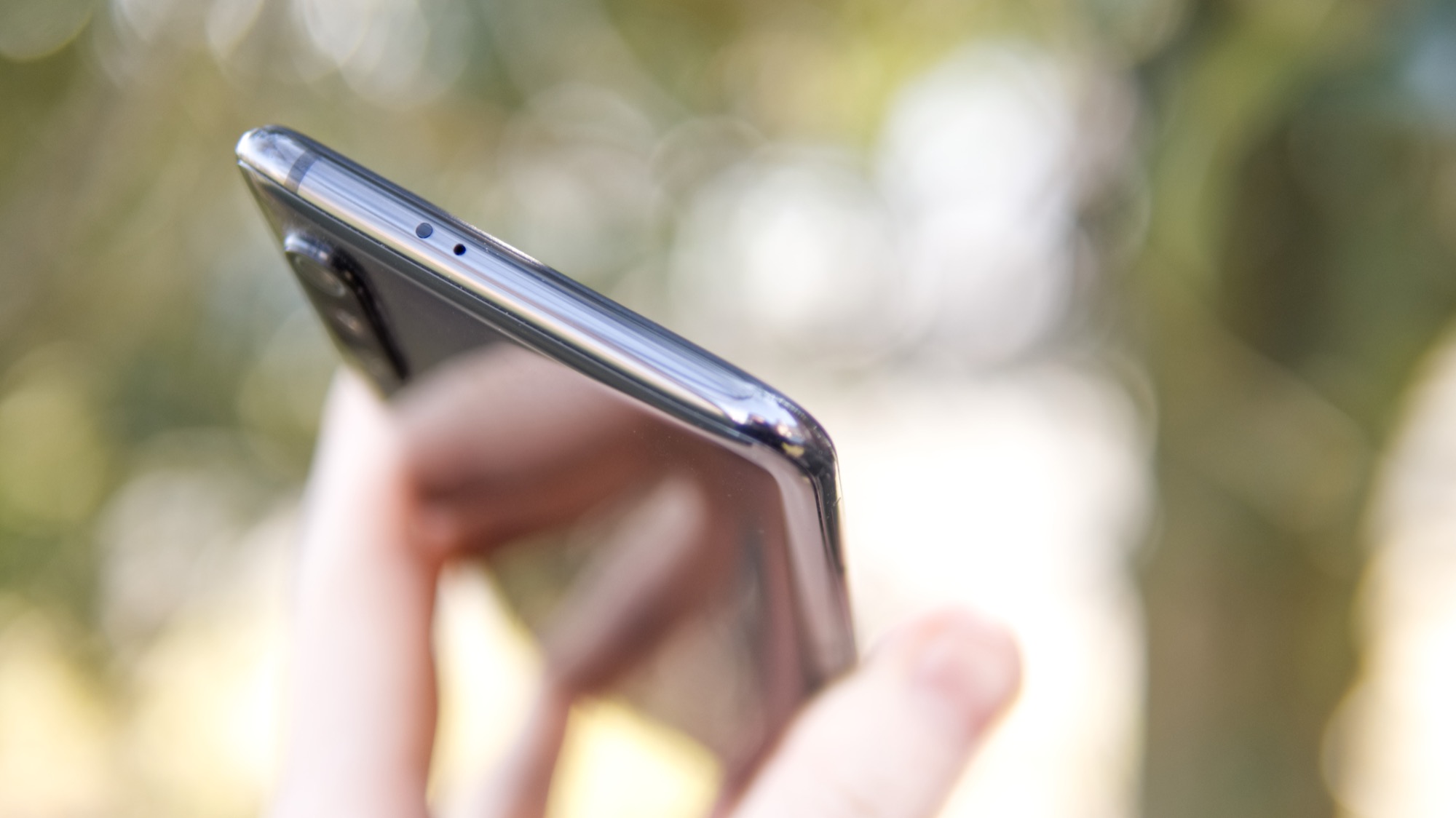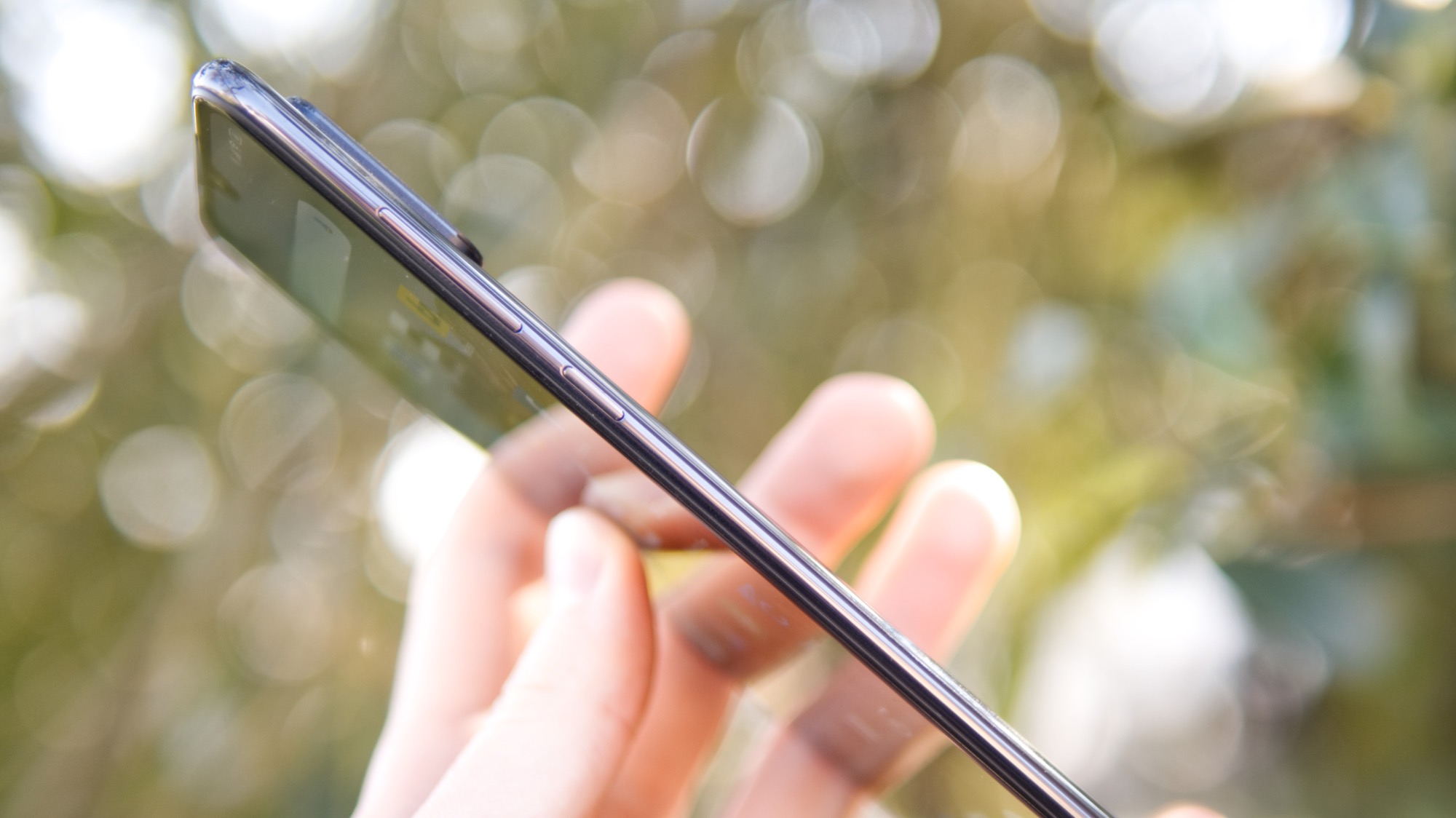 Glaset på baksidan möter metallramen längs sidorna. Mötet är nära på perfekt. Tillsammans med de ganska kraftigt rundade sidorna och hörnen är därför Mi 9 fri från obekväma eller vassa kanter. Längs höger sida finns en på/av-knapp och två volymknappar som ger ganska bra fysisk återkoppling. På ovansidan finns en sekundär mikrofon och en IR-sändare för att styra TV-apparater och annan liknande utrustning. Längs vänster sida finns en kortläsare med plats för dubbla nanoSIM-kort men inget minneskort. Här finns också en fjärde knapp som leder raka vägen till Google Assistent. Knappens funktion kan anpassas och den kan ha olika funktioner för korta och långa tryck. Knappen sitter praktiskt för att vara enkel att nå och använda.