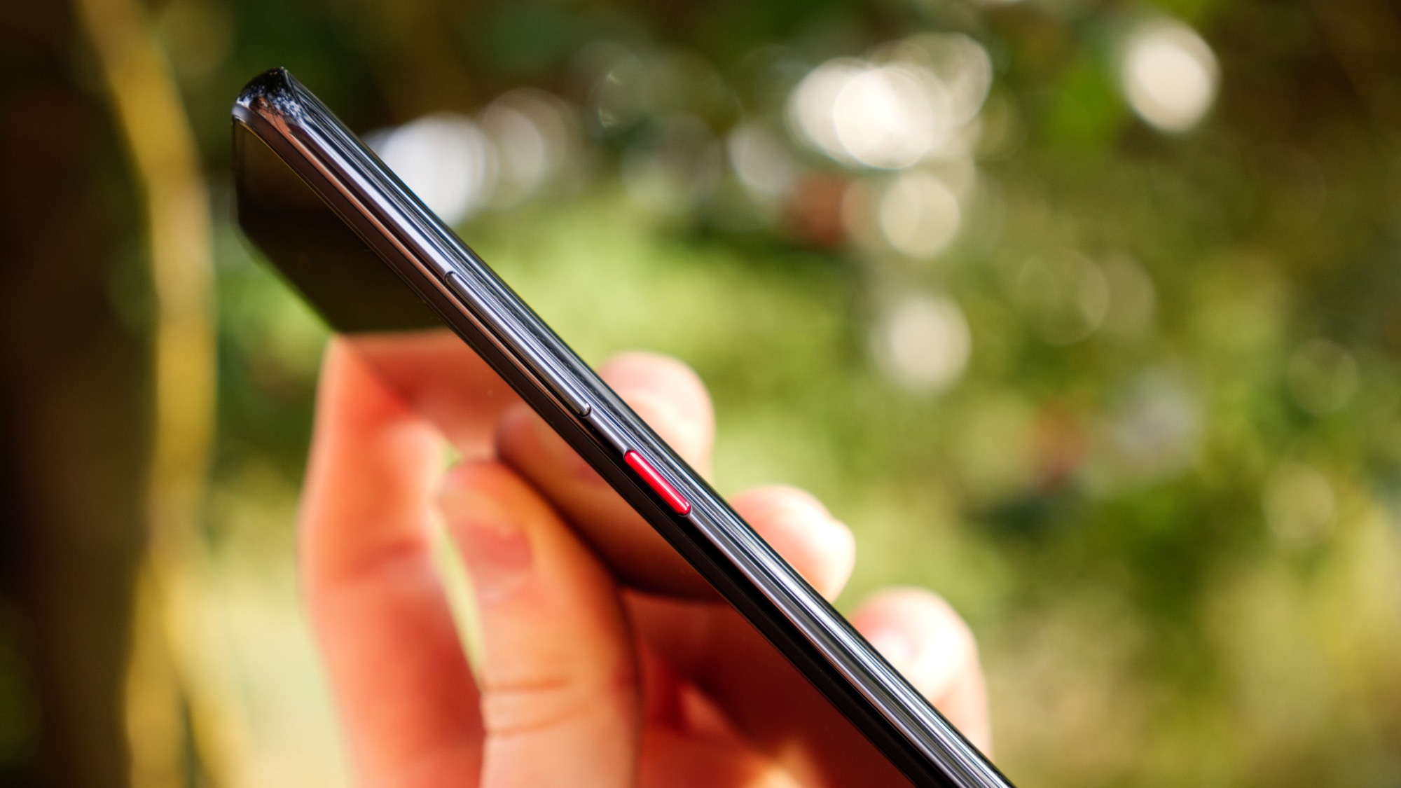 Sidorna är gjorda av aluminium och ger telefonen en stadig konstruktion. Längs höger sida finns en på/av-knapp med en återkommande röd accentfärg. Ovanför den finns två volymknappar som ger bra fysisk återkoppling. På ovansidan finns den främre kameran, som alltså matas ut ur telefonen med en motor. I kameramodulen finns också en enfärgad notislampa som visar inkommande notiser och laddningsstatus. Det är mer än vad de flesta konkurrenter kan skryta med och vi gillar det skarpt.