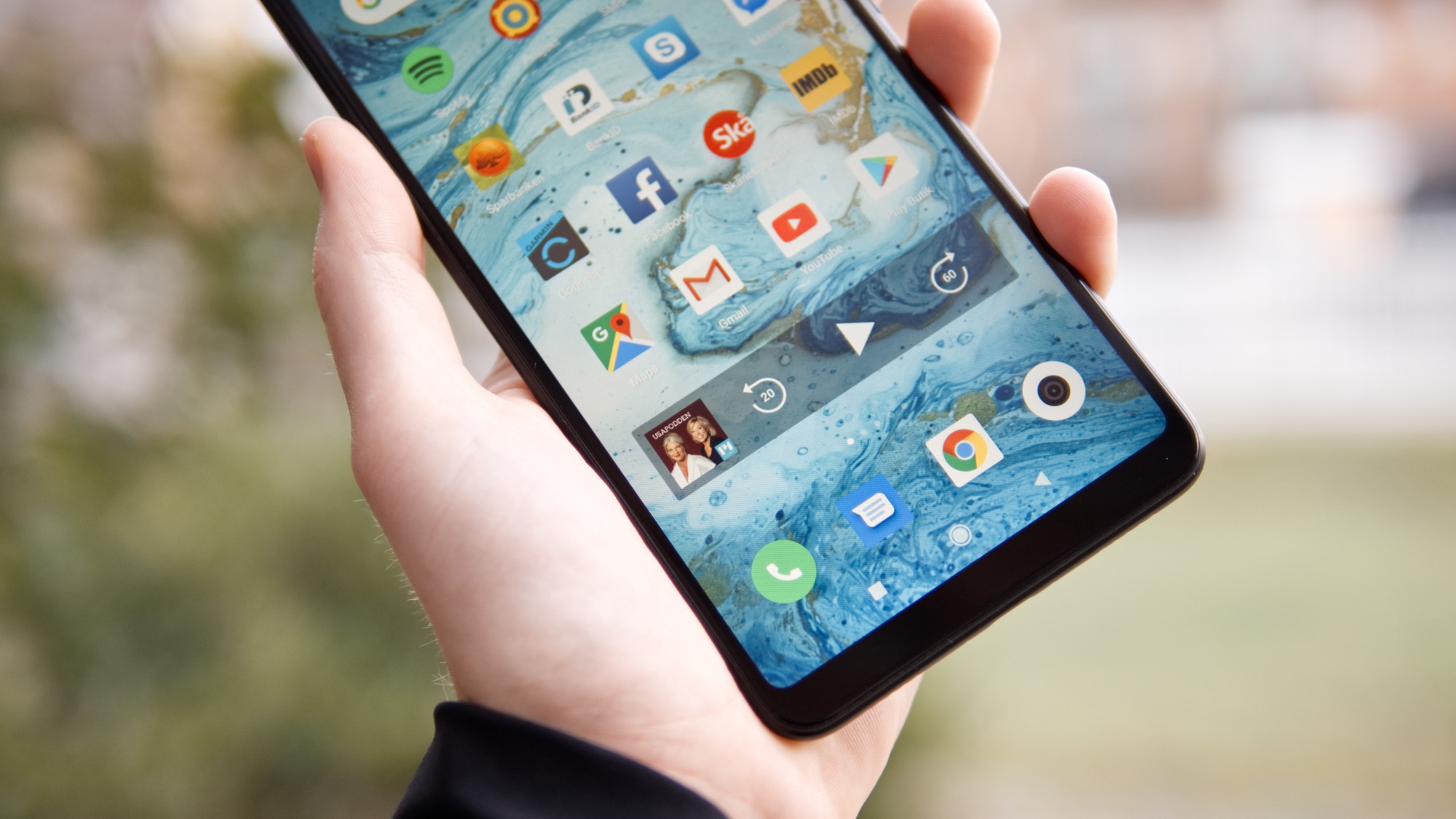 Läs mer om hårdvaranXiaomi Mi Max 3:s mest karakteristiska egenskap är dess storlek. Med en längd på 17,6 centimeter och en bredd på 8,7 centimeter är den fullkomligt gigantisk. Den går att hålla med en hand med det är inte lätt att göra något med samman hand när den väl ligger där. För personer med stora tummar går det rimligtvis att nå nära hälften av skärmen på ett acceptabelt sätt. Bortom det krävs dock handgymnastik.
