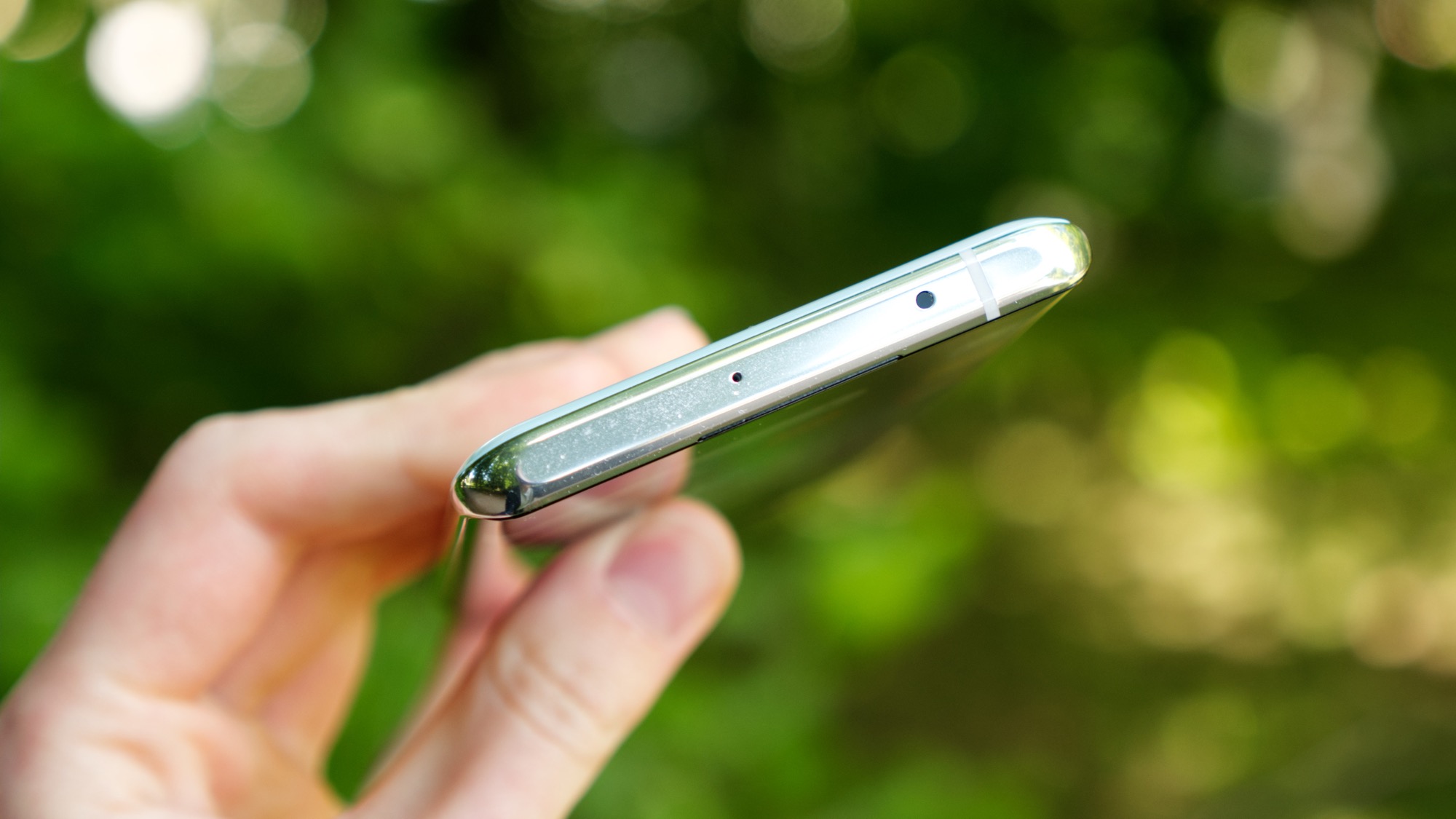 Glaset är också rundat längs sidorna. Längs höger sida finns en på/av-knapp och två volymknappar som erbjuder bra fysisk återkoppling. Längre ner finns en kortläsare med plats för dubbla nanoSIM-kort men inget microSD-kort. På ovansidan finns en IR-sändare, för att styra till exempel TV-apparater och ljudanläggningar. Undersidan bjuder slutligen på en USB Typ C-port, en mikrofon, högtalare och hörlursport. Hörlursporten är ett sätt som gör Mi Note 10 Lite till en lite ovanlig mobil från 2020.