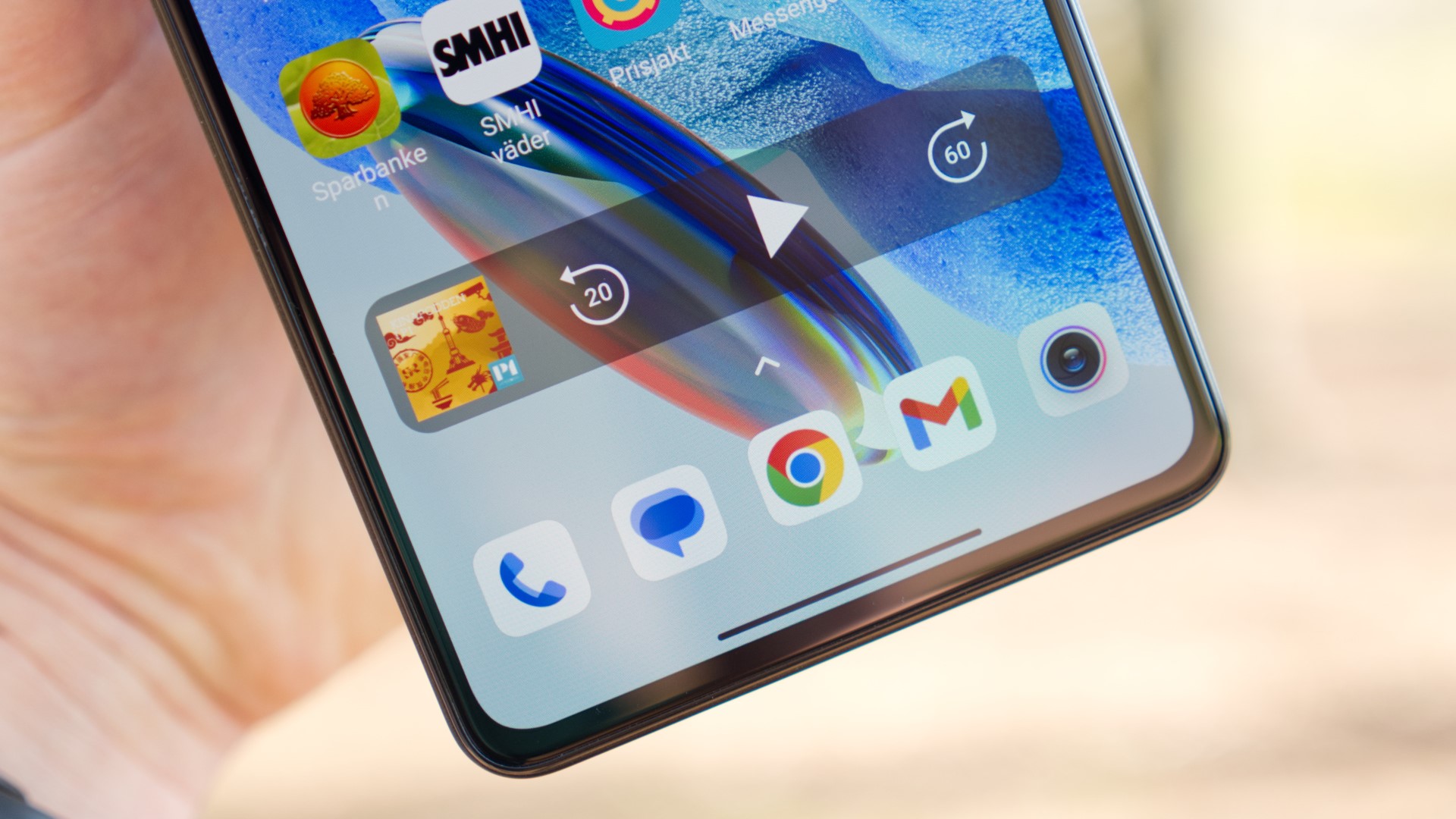 Redmi Note 12 Pro har en OLED-skärm med 1080p-upplösning över 6,67 tum. Det betyder att den erbjuder bra kontrast men att den också är en gnutta suddig i jämförelse med de bästa. Skärmen levererar bra ljusstyrka på 870 nits enligt våra labbtester. Det är bra för klassen och gör skärmen lätt att se utomhus. Skärmens färgåtergivning är helt okej men kan inte riktigt användas som referens vid fotografering. Det är å andra sidan inte heller något vi förväntar oss från en mobil i klassen. Med 120 Hz bildfrekvens har vi inget att klaga på när det gäller skärmens responsivitet. Redmi Note 12 Pro har kort sagt en bra skärm för sin klass.