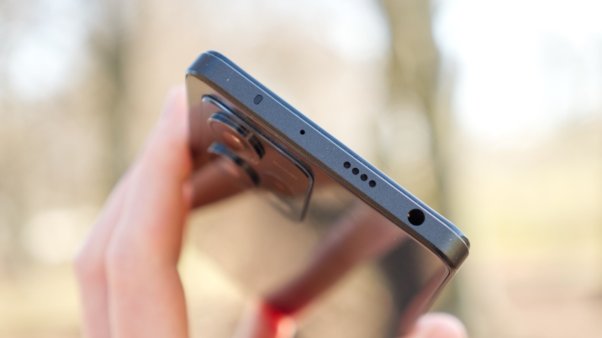Redmi Note 12 Pro är en svart fyrkant med glas på framsidan och baksidan. Baksidan på vårt svarta exemplar är dessvärre en hemsk fingeravtrycksmagnet, en av de värsta vi sett. I vanlig ordning kan vi dock skydda glaset med ett inkluderat plastskal. Det är en fördel som till exempel Samsung inte kan erbjuda. På baksidan finns en kameramodul med tre kameror och dubbla LED-lampor som skyddas effektivt av det inkluderade skalet.