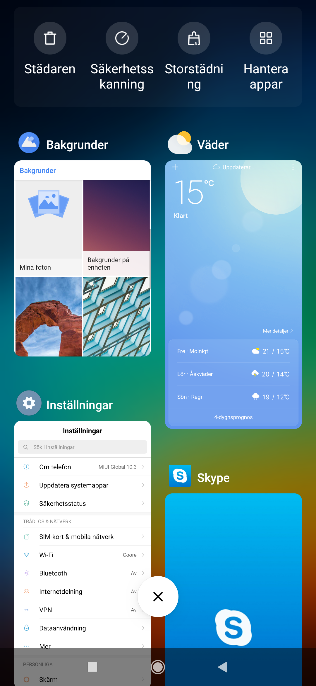 Läs mer om mjukvaranMIUI 10.3 är den senaste versionen av Xiaomis egen tolkning av Android. Den inkluderar flera egenutvecklade appar så som en ”Mi Kalkylator”, en filöverföringsapp, en Väder-app, en resurshanteringsapp kallad Städaren, en app för den kinesiska onlinebutiken AliExpress och en Scanner-app för QR-koder. De allra flesta Xiaomi-appar är överflödiga och bidrar inte med mycket värdefullt som inte redan finns tillgängligt från till exempel Google. AliExpress-appen är dessutom inget mer än reklam och appar så som Väder-appen ber om underliga behörigheter att hantera telefonsamtal och ha åtkomst till mediafiler. De är helt enkelt inte så värdefulla, utan ligger mest och skräpar.