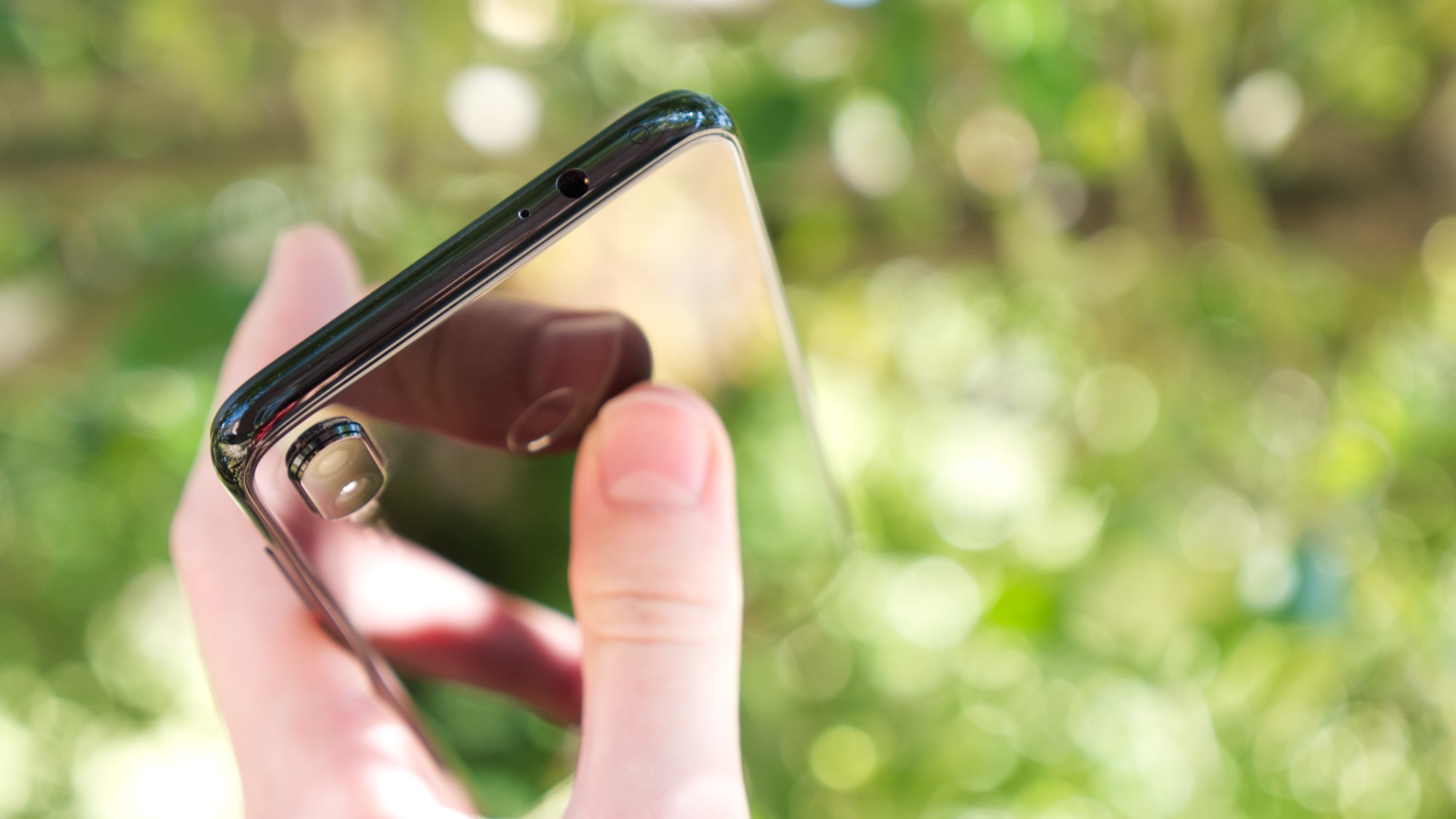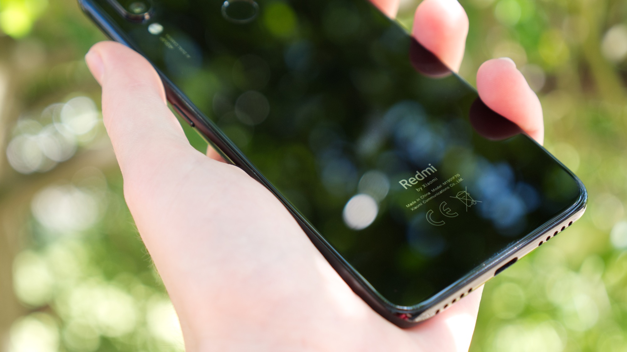 Längs sidorna finns plast – ett mjukt material som tyvärr är enkelt att repa eller skada. Utan det inkluderade plastskalet ligger med andra ord plastsidorna i riskzonen. På höger sida finns i alla fall en på/av-knapp och två volymknappar som är praktiskt placerade och ger bra fysisk återkoppling. På ovansidan finns en hörlursport, en sekundär mikrofon och en IR-sändare för att till exempel styra TV-apparater och ljudanläggningar. IR-sändare är relativt ovanliga och är ett intressant tillägg till en prisvärd telefon. På vänster sida finns en korthållare med plats för två kort, antingen två nanoSIM-kort eller ett nanoSIM- och ett microSD-kort. På undersidan finns slutligen en mikrofon, högtalare och en USB Typ-C-port. Det gör Redmi Note 7 till en av Xiaomis första mobiler i den lägsta prisklassen med den symmetriska porten.