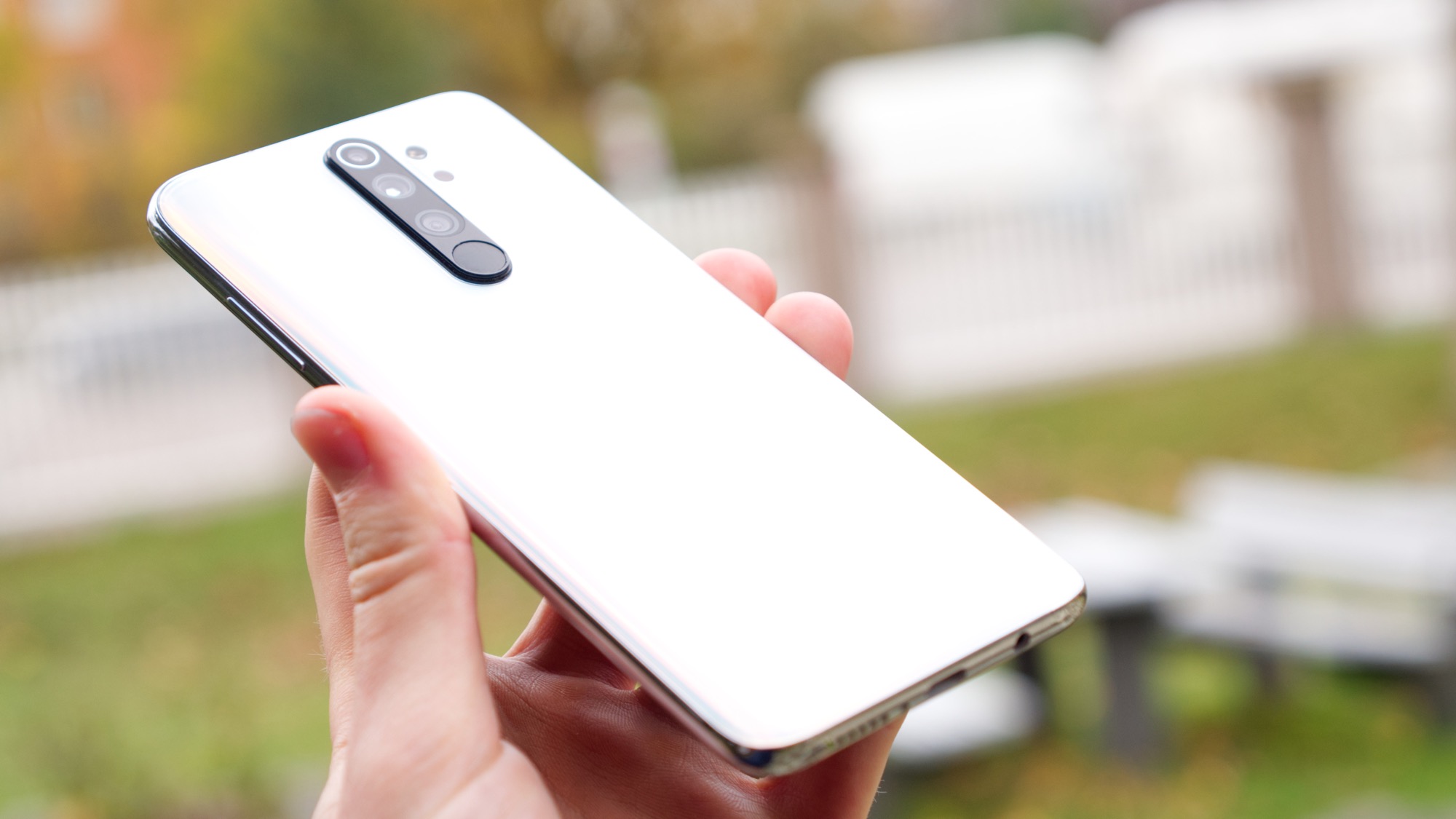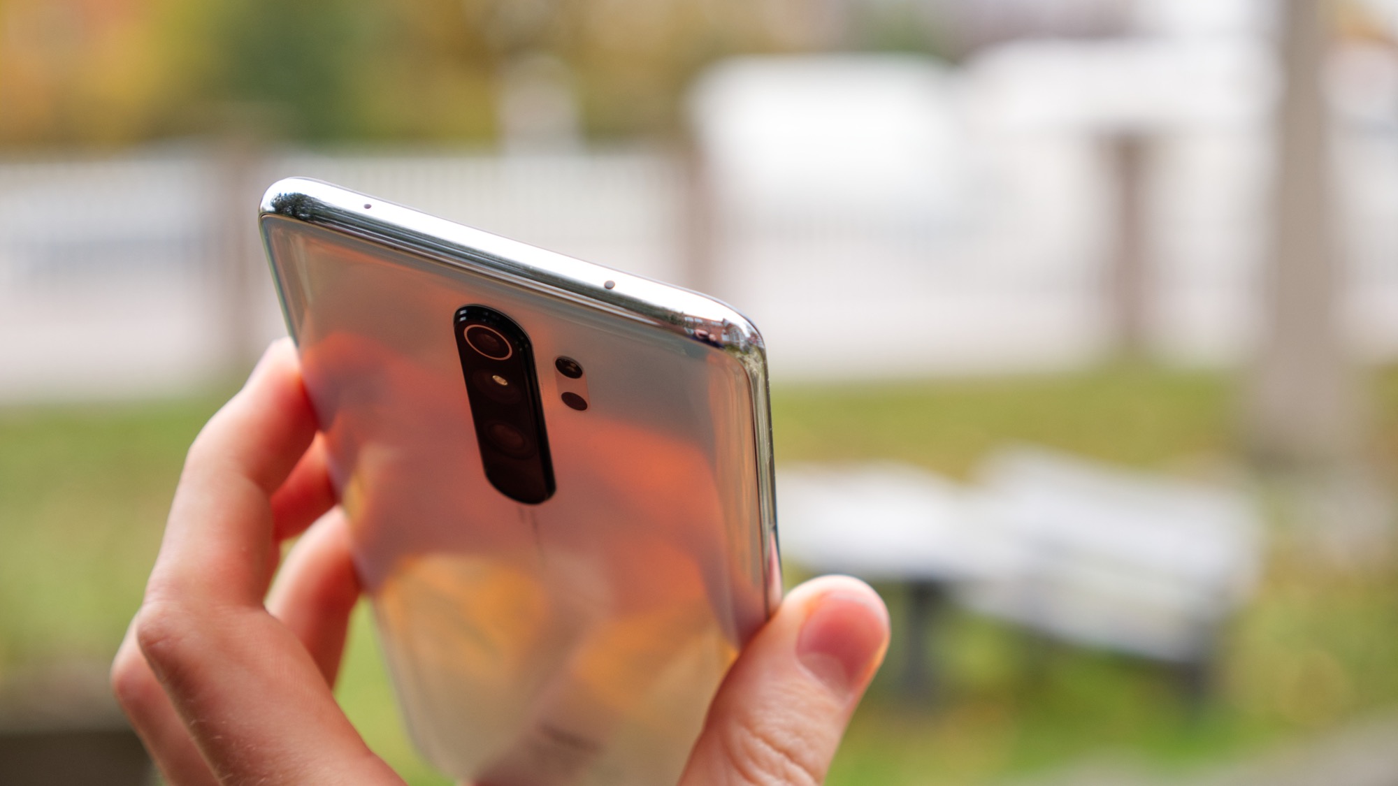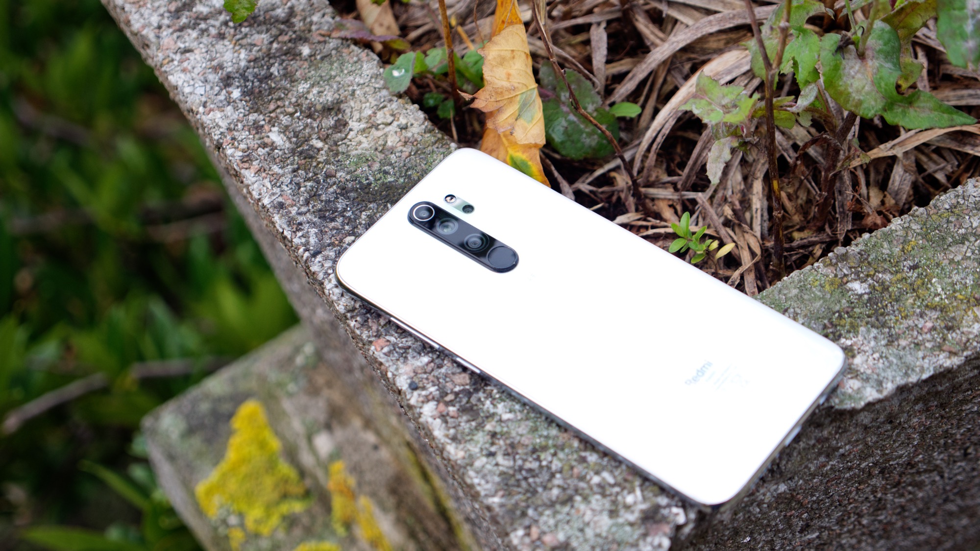 Baksidan av Redmi Note 8 Pro täcks av glas, som nästan alla andra mobiler på marknaden. Det ger den ett modernt utseende som dock också gör att både baksidan och framsidan riskerar att spricka när olyckan är framme. Glaset har i alla fall någon typ av behandling som gör att ljus ofta reflekteras med en rosa/orange ton på den annars vita baksidan av vårt testexemplar.