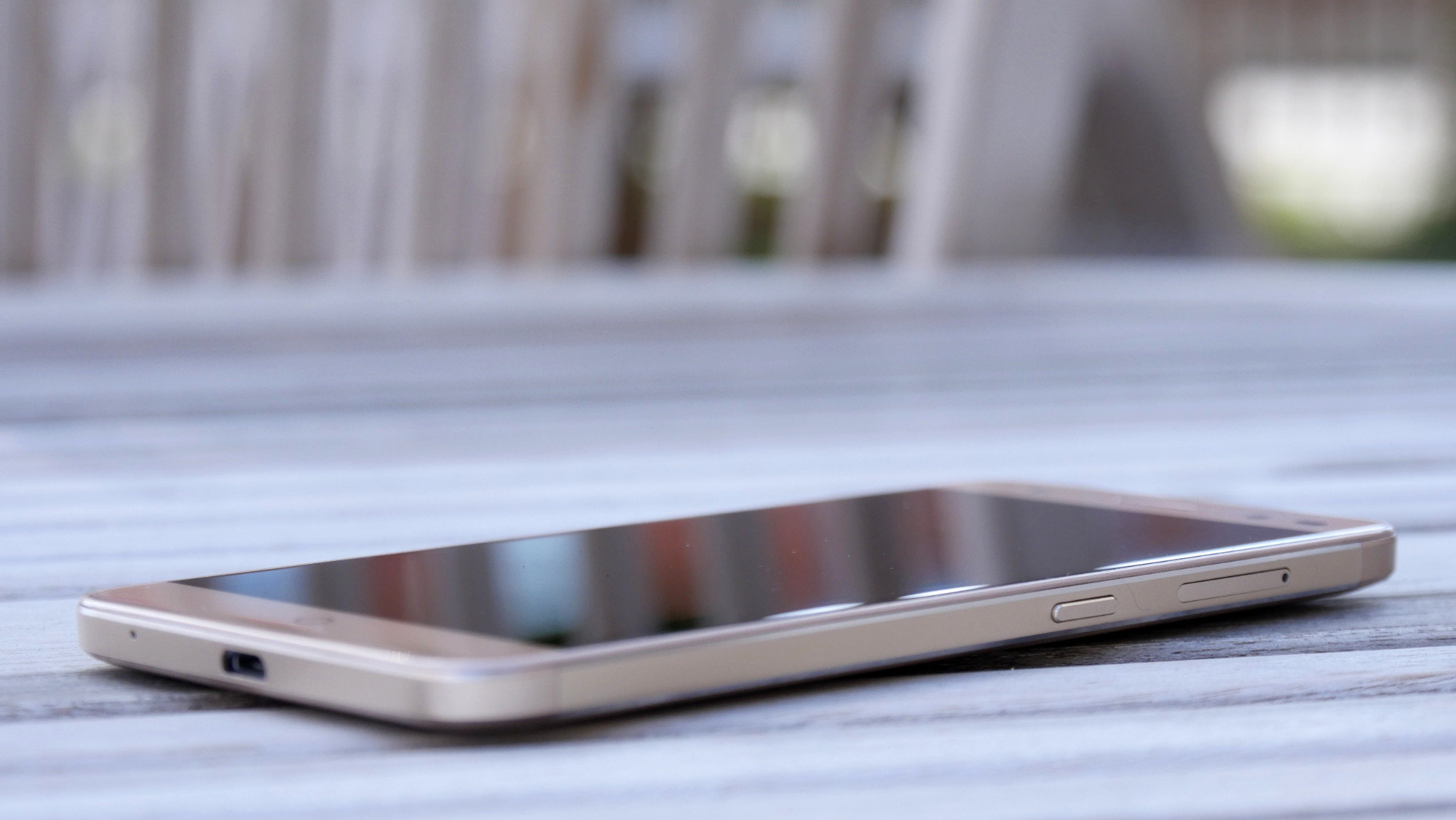 Hela telefonen är inte gjord av metall. Ovan- och undersidan av baksidan är gjord av plast för att ge utrymme för antenner som inte kan skicka signaler genom metallen. Telefonens sidor är dock också gjorda av metall. Till och med knapparna på telefonens sidor är gjorda av metall. De är dessutom lätta att använda eftersom de ger gott om fysisk återkoppling och sticker ut tydligt från sidan av telefonen. Så gott som alla delar av telefonen ger oss därför en stark känsla av kvalitet och lyx – imponerande med tanke på telefonens pris.
