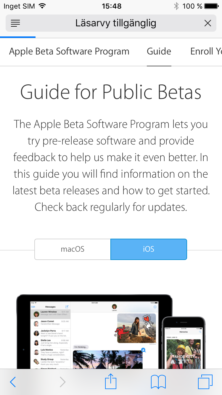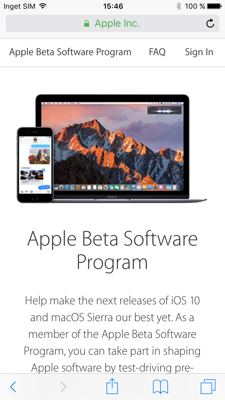 Sedan några år tillbaka har Apple erbjudit så kallade publika betor av sina operativsystem. Det inkluderar iOS som används av iPhone och iPad. De publika betorna är ett sätt för allmänheten att ta del av Apples kommande nyheter och samtidigt ett sätt för Apple att testa sin mjukvara på stor skala. Vi brukar inte rekommendera vanliga konsumenter att testa publika betor när de först släpps men nu börjar Apples nya operativsystem mogna. I fredags släpptes den sjätte versionen av Apples iOS 10-beta. Det betyder att Apple nu börjar närma sig den slutgiltiga versionen och att det inte längre finns så många problem med det. För dig som är nyfiken är det därför nu en utmärkt tid att testa.